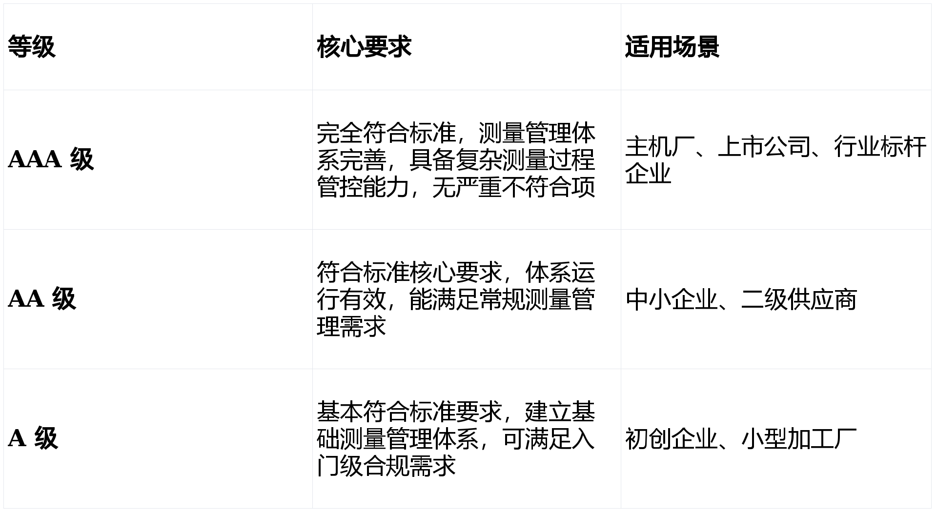 国内认证机构将 ISO10012 分为三个等级,便于企业根据自身需求选择: