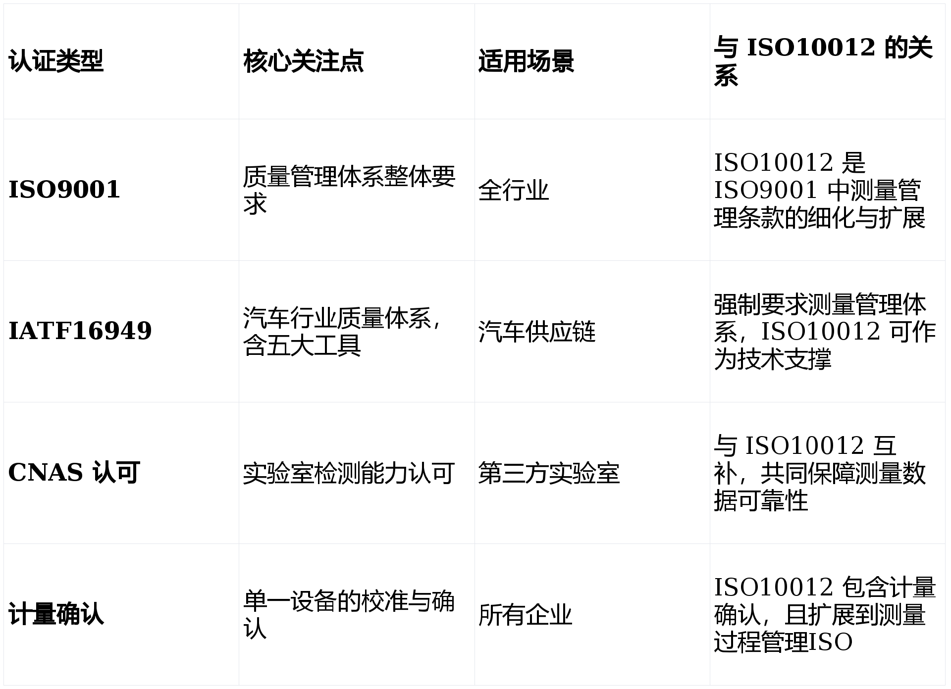 ISO10012 以 “测量过程控制 + 数据可靠性保障” 为核心,区别于其他体系认证: