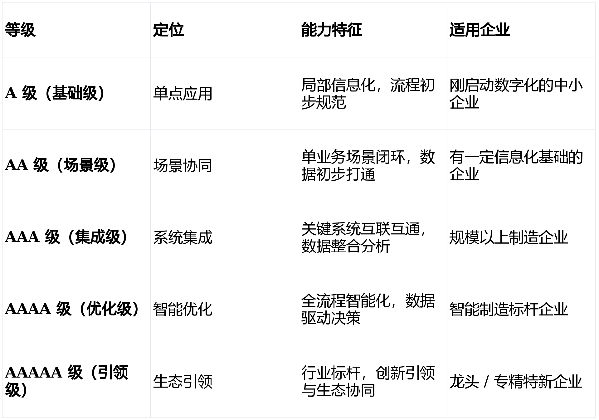 AAAA/AAAAA 级需技术答辩,演示核心能力(如 AI 质检、数字孪生)。